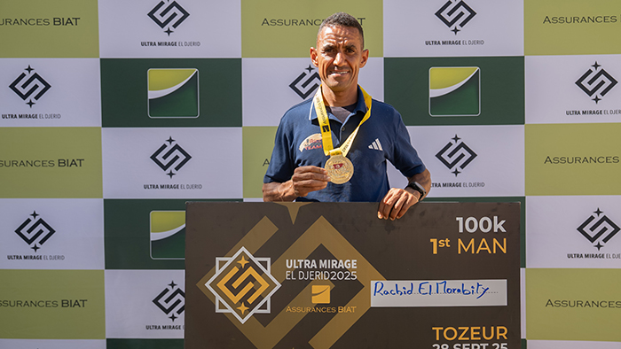 La 9ᵉ édition de l’Ultra Mirage El Djérid (UMED), événement phare de l’ultra-trail en Afrique du Nord, s’est tenue le 27 septembre 2025 dans le somptueux décor désertique du lac Chamsa à Tozeur. Réunissant près de 500 participants issus de 29 nationalités, la compétition a proposé ses parcours phares de 50 km et 100 km, tout en introduisant cette année une nouvelle distance de 25 km, la course Assurance BIAT Ultra Trail. Sur le parcours phare de 100 km, Rachid El Morabity s’est imposé en 8 h 36 min 47 s, tandis que chez les femmes, Elien Janssen a remporté la victoire en 11 h 38 min 21 s, faisant tous deux preuve d’une endurance et d’une ténacité remarquables.