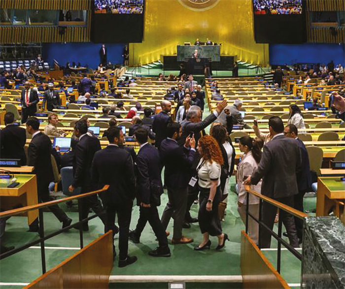 «La semaine palestinienne à l’ONU», commencée lundi par une série de reconnaissances et de soutiens, se clôturera sur cette scène de totale indignation face à la barbarie incarnée. Une grande bataille gagnée pour qu’un terme soit mis au calvaire de tout un peuple sous génocide.