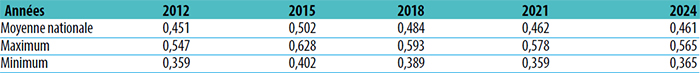 Lors de la période 2012-2024, l’IDR a connu deux phases distinctes. L’une englobe les années 2012-2015 au cours desquelles il a connu une relative embellie, passant de 0,451 (moyenne nationale) à 0,502 ; l’autre englobe les années 2015-2024 au cours desquelles l’IDR n’a cessé de baisser, passant de 0,502 à 0,484 en 2018, ensuite à 0,462 en 2021 pour atteindre 0,461 en 2024. Selon l’Itceq, les raisons de cette baisse résident dans les mauvaises performances enregistrées dans cinq facteurs constitutifs de l’indice: la dimension sociale, l’accès aux services de santé, la capacité d’absorption et l’étendue du marché de l’emploi, la tension du marché du travail et l’accès aux services de loisir.