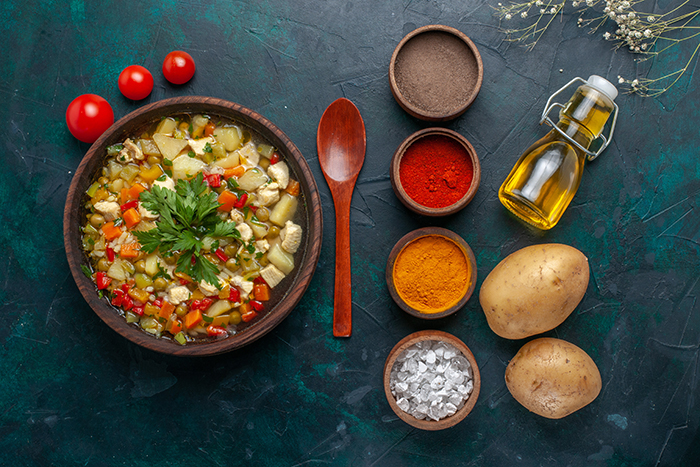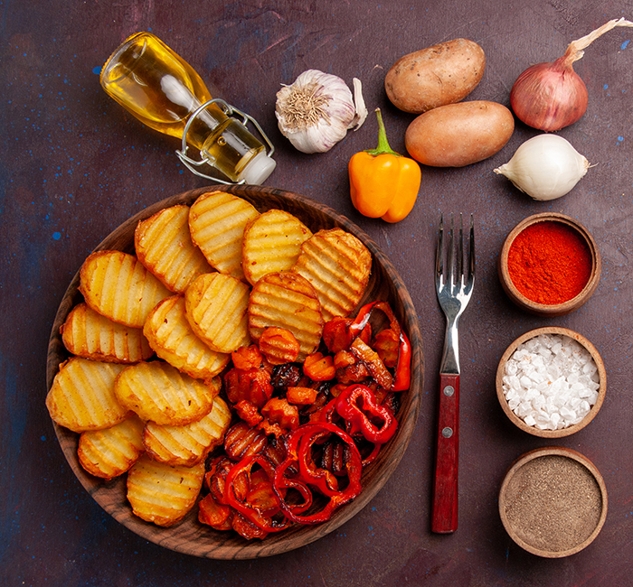 Dans le régime méditerranéen tunisien, dominé par les céréales (près de 200 kg/habitant/an) et complété par l’huile d’olive, les légumes et les légumineuses, la pomme de terre s’est imposée comme un complément énergétique incontournable. Accessible et disponible toute l’année, elle équilibre le régime alimentaire et apporte diversité et satiété.