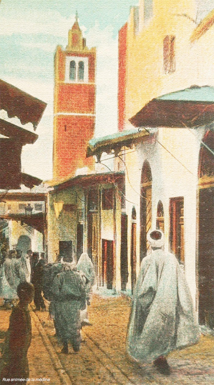 Les traits particuliers de ce milieu étaient l’importance du patrimoine familial accumulé par la succession des générations dans l’exercice d’une activité économique urbaine souvent associée à la propriété agricole, l’exercice d’une profession liée au culte et à l’enseignement, une culture privilégiant la discrétion et surtout l’importance accordée au travail dans des domaines jugés socialement valorisants. Coexistant avec les baldis qui vivaient, travaillaient et évoluaient majoritairement dans la médina proprement dite, se trouvait une population de travailleurs émigrés de l’intérieur de la régence vouée aux métiers de peine ou rejetés par les baldis: portefaix, gargotiers, marchands de légumes, par exemple, dont le caractère «vil» davantage que l’origine ethnique ou régionale interdisait l’assimilation à la société baldi-e. Leur citadinité, bien que réelle et indispensable, était, en quelque sorte, une citadinité non agréée.