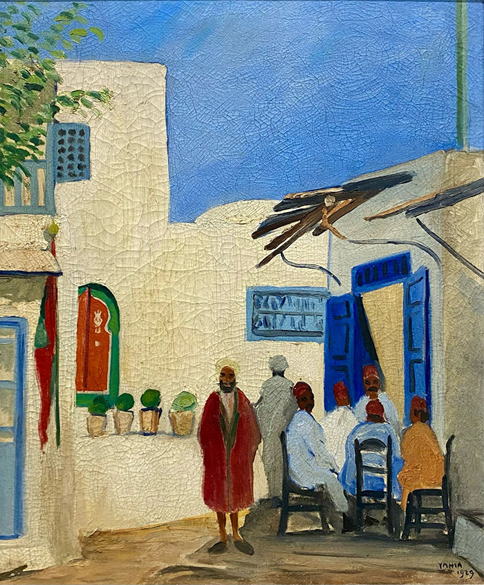 Considéré comme l’un des pères spirituels de l’École de Tunis, Yahia Turki développe une peinture vibrante, attentive aux scènes populaires. Sa palette lumineuse et son regard humaniste témoignent d’une profonde intimité avec la société tunisienne.