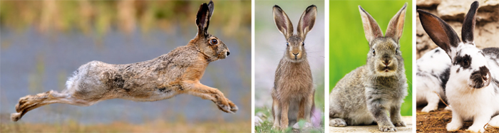 Le lapin domestique est issu de la sélection par l’homme et vit en captivité, avec une grande diversité de races, de tailles et de couleurs. Le lapin sauvage, plus petit et plus farouche, vit en terriers collectifs et possède une robe discrète pour le camouflage. Le lièvre s’en distingue nettement: plus grand, doté de longues pattes et oreilles, il mène une vie solitaire et ne creuse pas de terriers, se contentant de simples dépressions au sol.