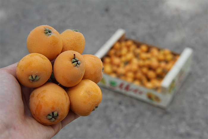 Appelé également bibacier ou bibassier, le néflier du Japon (boussaa en arabe البوصاع), contrairement à ce que son nom pourrait laisser croire est originaire du sud de la Chine. Sa culture y est mentionnée depuis plus de deux milles ans, tant pour la consommation de ses fruits que pour ses propriétés médicinales.