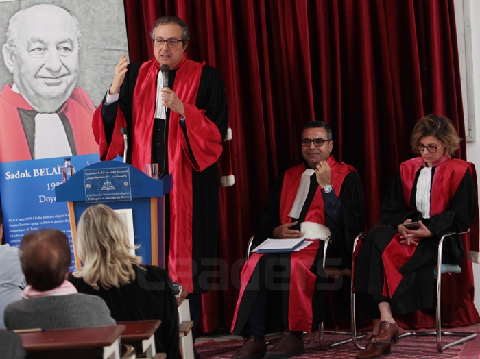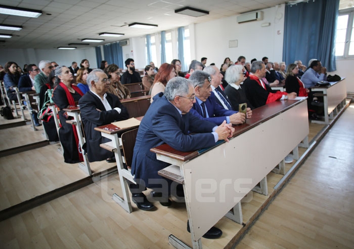 Le doyen Wahid Ferchichi avait invité à la tribune Samir Bêcha, représentant du ministre de l’Enseignement supérieur et de la recherche scientifique, Mustapha Belltaifa, Sami Bostangi, Lotfi Chedly, Salwa Hamrouni (qui a lu un message du doyen de la faculté de droit de Sfax), Fadhel Moussa, Hatem Kotrane, Chedly Ben Younes, Soukaina Bouraoui et Kalthoum Meziou.